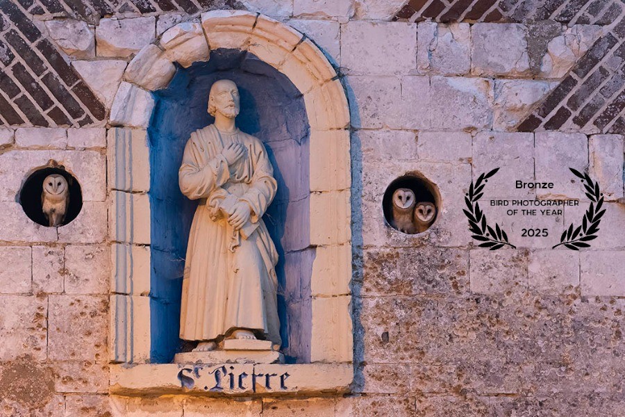 Photo de chouettes effraies finaliste du concours Aves Emotion'ailes 2023 et publiée dans le catalogue de l'exposition.